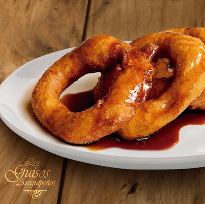 Los postres arequipeños de las fotografías son un queso helado y un plato de buñuelos.
